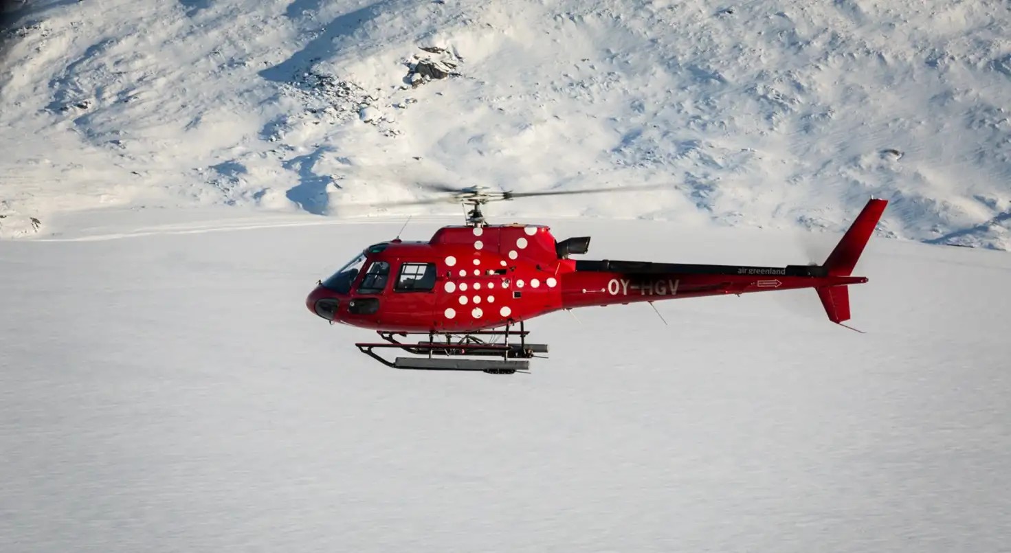 Qamutits medlemmer kan få afhentet snescooter med Air Greenlands helikopter.